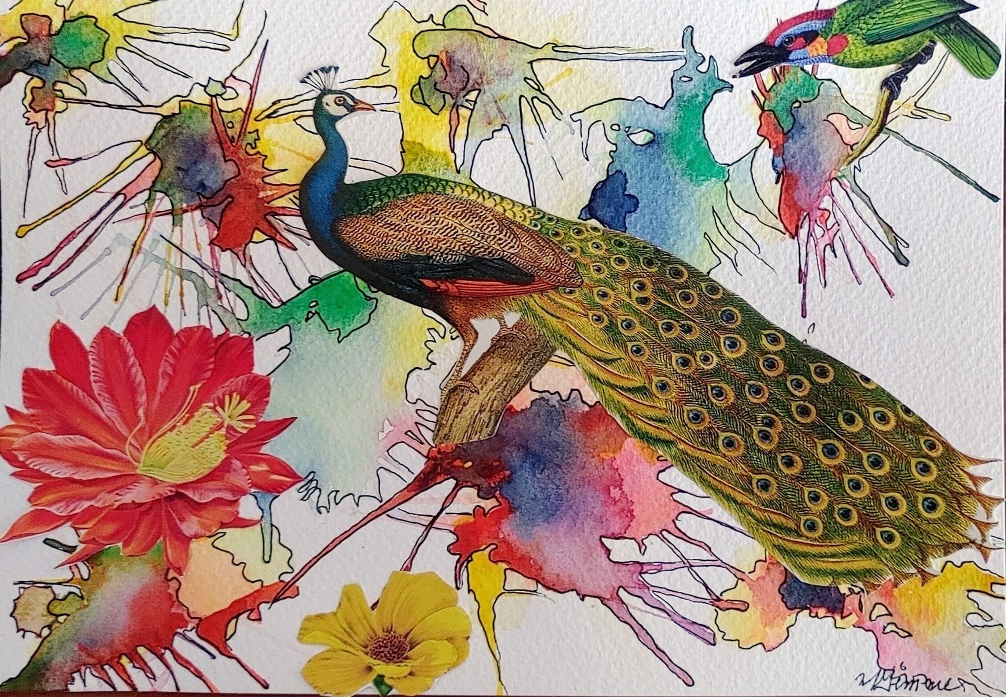 Bien que le collage soit mon médium de prédilection, j’aime bien expérimenter avec l’aquarelle et l’acrylique de temps en autre. Ces techniques me permettent d’explorer de nouvelles textures, couleurs et profondeurs.